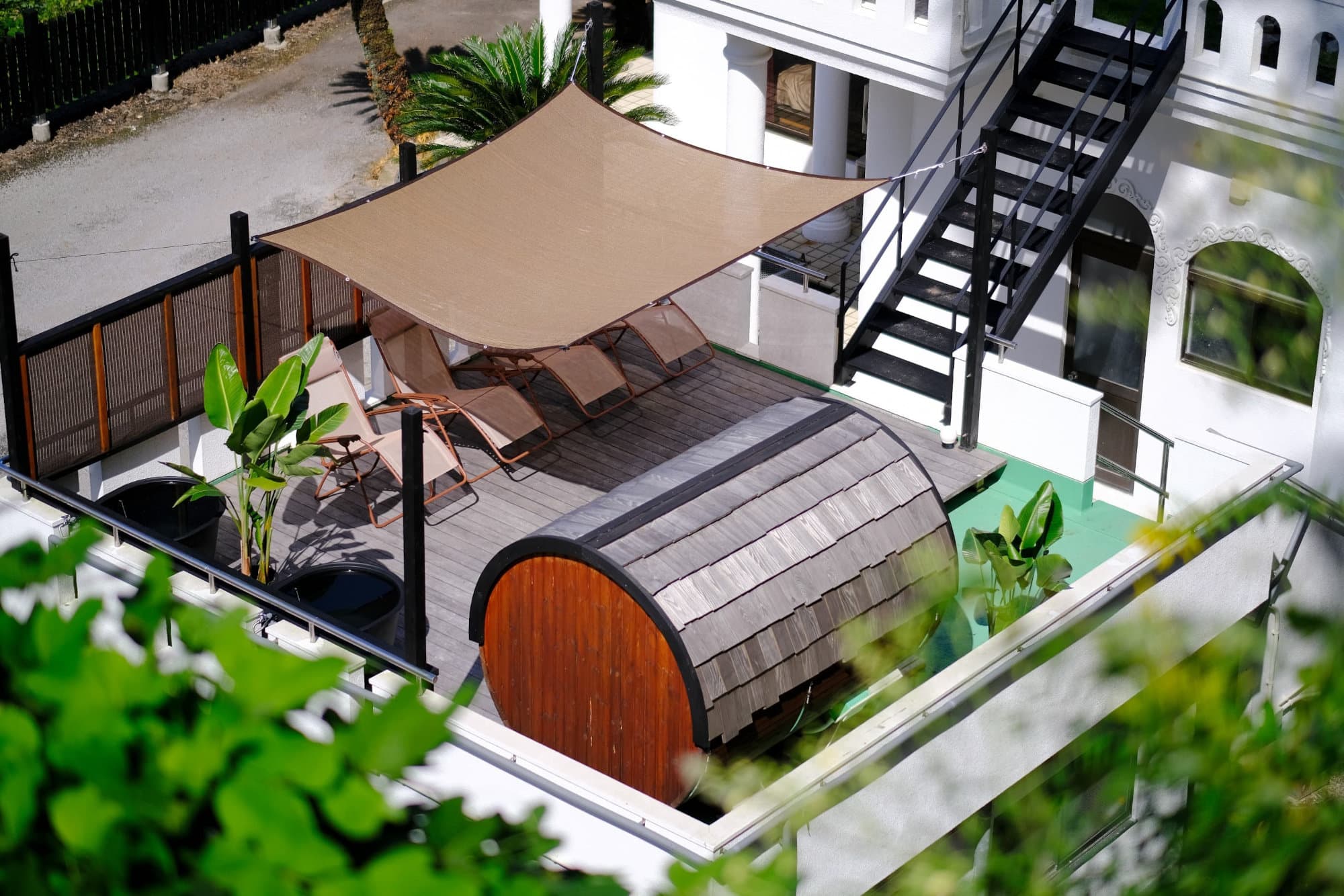 開放感のあるサウナ施設を設置しました。南国鹿児島での休息を一層彩ります。